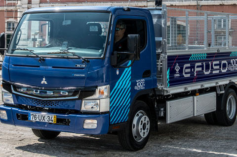With the FUSO eCanter, Lisbon aims to contribute to the reduction of noise and emission pollution caused by conventional commercial vehicles in urban areas. The vehicles will be in operation with ten parishes selected by the Lisbon Town Hall and will be primarily used for municipal gardening and waste disposal operations. These parishes are: Arroios, Avenidas Novas, Belém, Estrela, Misericórdia, Parque das Nações, Penha de França, Santa Maria Maior, Santo António and S. Vicente. During extensive customer trials in Portugal and Germany between 2014 and 2017, the cities of Lisbon, Sintra and Porto have already successfully used the pre-series version of the eCanter in daily transport operations.